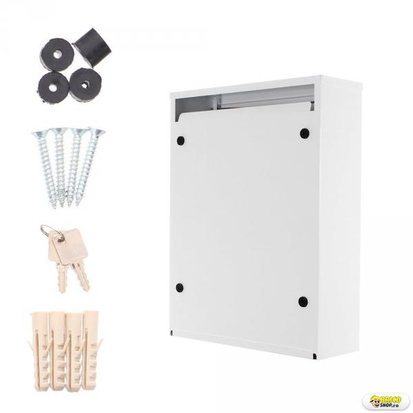 Cutie postala Rottner Como realizata din otel zincat rezistent la intemperiile vremii. Incuietoare cilindrica, se livreaza cu 2 chei in dotarea Como. Dimensiuni 320x250x85 mm. Dimensiuni fanta 35 x 210 mm. Greutate 1.3 kg. Material otel zincat. Acest model de cutie postala are 2 fante: atat in partea frontala cat si in partea posterioara, opusa usii de deschidere a corespondentei. Astfel se poate monta atat aplicata pe perete/usa/gard cat si incastrata in perete/usa/gard. Are o incuietoare cilindrica cu 2 chei. Pentru a va asigura ca asamblarea este rapida si usoara, veti gasi kitul de montare potrivit in pachetul de livrare al cutiei Como.