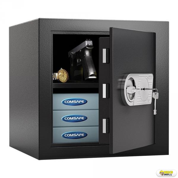 Seifurile Rottner Monaco sunt seifuri certificate conform clasa de securitate 1 in conformitate cu CSN EN 1143-1, avand pereti dubli din otel de inalta calitate. Seiful Rottner Monaco 45 este perfect pentru uz casnic sau birou, si ofera de asemenea, protectie limitata impotriva incendiilor si este foarte potrivit pentru depozitare obiecte de valoare si documente importante. Gama de seifuri omologate EN 1143-1 Monaco cuprinde atat seifuri cu inchidere mecanica (cu cheie) cat si seifuri cu inchidere electronica (cifru electronic). Precizare: Clientul poate alege dupa preferinte ce sistem de inchidere doreste.Preturile difera de la model la model. Acest model de seif monaco nu se poate comanda cu dubla inchidere , atat cheie cat si cifru electronic. Instructiunile de instalare si operare sunt incluse, seiful agrementat Monaco este livrat impreuna cu suruburile necesare pentru montare. Certificari seif antiefractie Monaco 45: *Clasa de securitate 1 in conformitate cu CSN EN 1143-1. *Certificat SZU CZ Certificat nr. J-32-20183-10 / Norma Euro CSN EN 1143-1 + A1: 2009. Acest seif omologat antiefractie Monaco 45 are inchidere manuala, cu cheie. Se livreaza cu 2 chei in dotarea standard. Incuietoare blindata, protejata impotriva tentativelor de taiere sau gaurire. Disponibil si cu inchidere electronica pe baza de baterii. Seif omologat antiefractie Monaco 45 cu perete dublu din otel de inalta calitate. Dimensiuni exterioare 435 x 435 x 445 mm. Dimensiuni interioare 370 x 370 x 355 mm. Volum 49 litri. Greutate 55 kg. Unghiul de deschidere de maxim 90 °, balamale la interior. Cinci bolturi de inchidere in trei directii. Culoare antracit. Ancorarea seifului Monaco 45 se face in podea, avand doua gauri de prindere de 12 mm diametru. Este prevazut suplimentar si cu 2 orificii de prindere in spate, pentru ancorare in perete. Se livreaza impreuna cu suruburile necesare montarii. Instructiunile de montare si utilizare sunt incluse in setul de livrare.