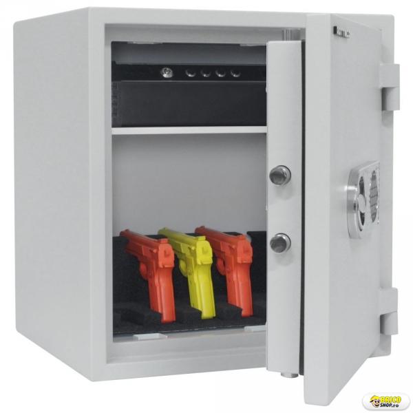 Dimensiuni exterioare 500 x 540 x 432 mm. Dimensiuni interioare 424 x 462 x 302 mm. Volum 60 litri. Greutate 149 kg. Grosime perete 24 mm. Grosime usa 62 mm. Grosime foaie de usa 10 mm. Unghiul de deschidere de maxim 180°, balamale la exterior. Sase bolturi de inchidere in trei directii. Culoare gri deschis RAL 7035. Inchidere electronica cu cifru. Mecanism actionat de baterie de 9V, neinclusa in setul de livrare. Incuietoare blindata protejata impotriva tentativelor de taiere/gaurire. Ancorarea seifului Opal Fire Premium OPD 55 EL se face in podea, fiind prevazut cu o gaura de prindere de 15 mm diametru. Instructiunile de montare si utilizare sunt incluse in setul de livrare. Se livreaza impreuna cu suruburile necesare montarii M15 x 140.